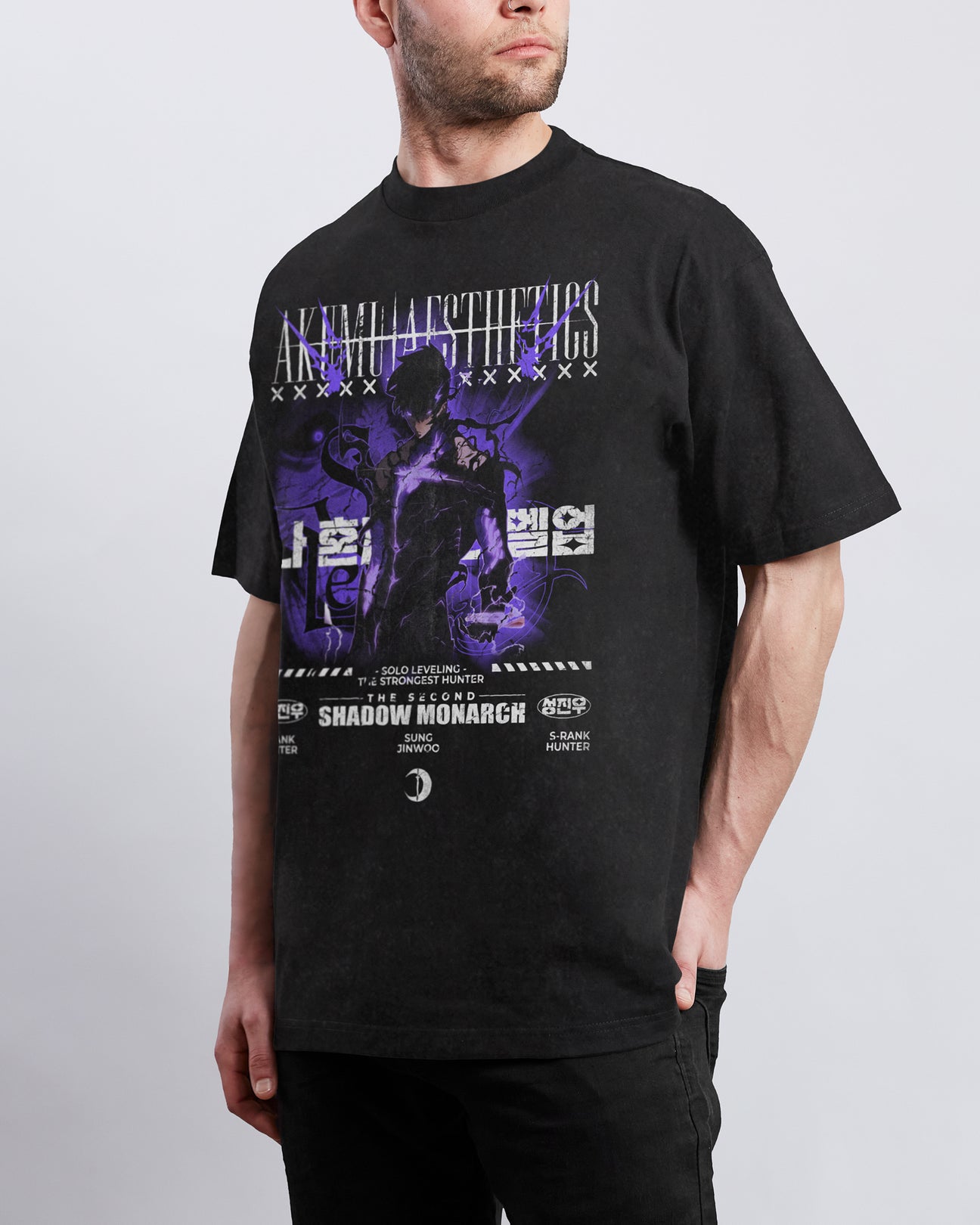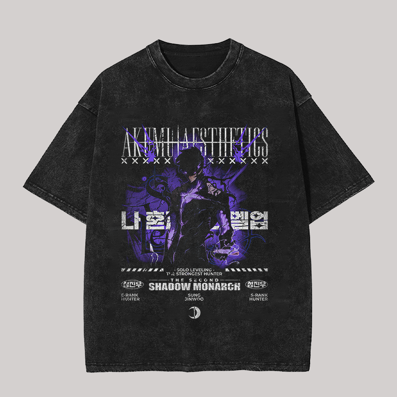 Solo Leveling Shadow Monarch Printed Unisex Washed T-Shirt